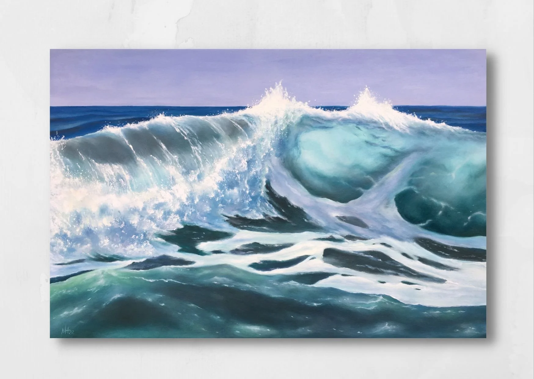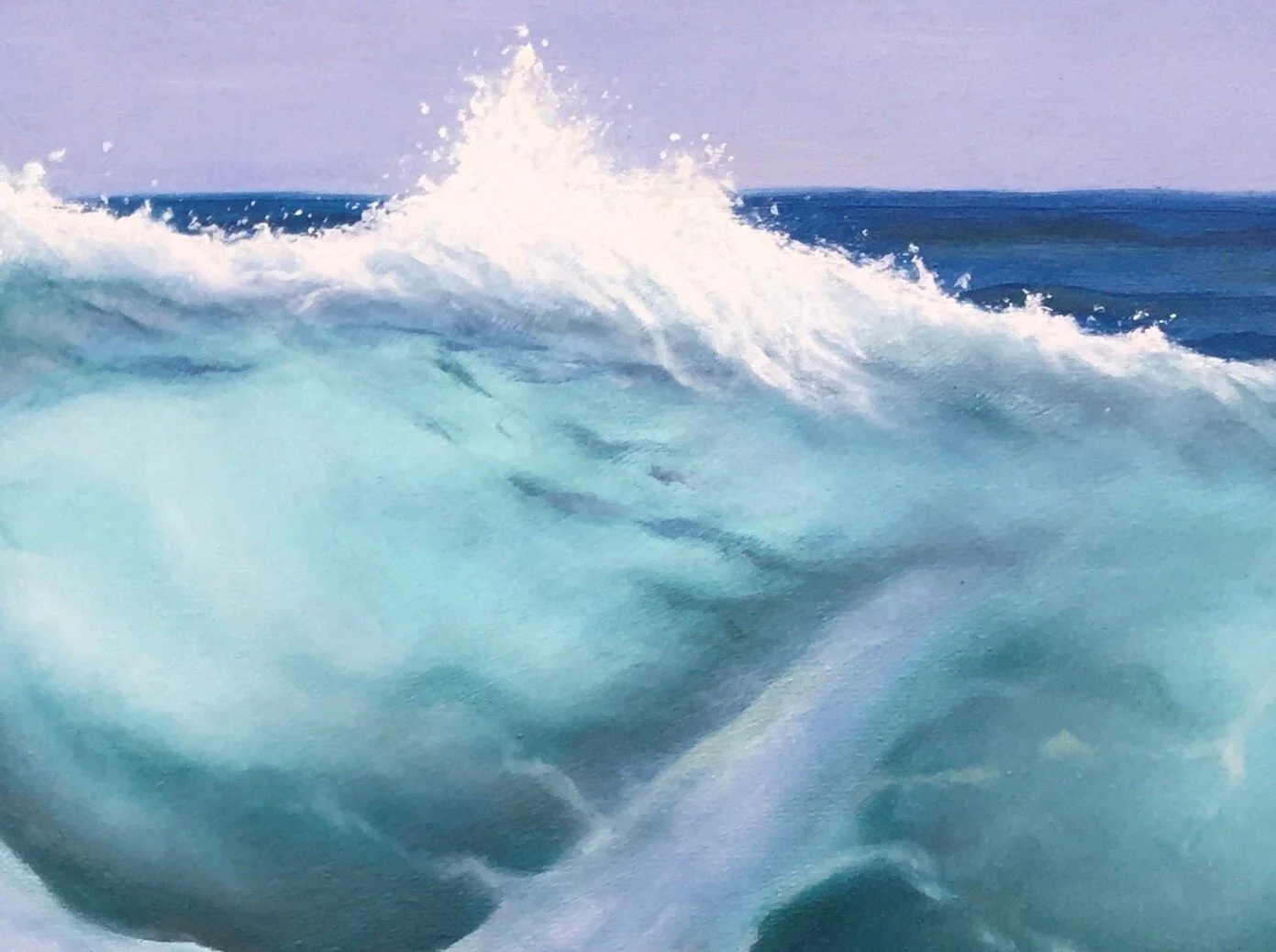 Diese kraftvolle energiegeladene Welle wirkt in ihrer Ausstrahlung sehr erhaben. Ein beeindruckender Blickfang wie sie sich hoch aufbaut Richtung Himmel empor. Anmutig und präsent, sich ihrer Kraft bewusst. Sie saugt das umliegende Wasser an, um es zum Aufbau ihrer Größe zu benutzen. Sie will hoch hinaus.